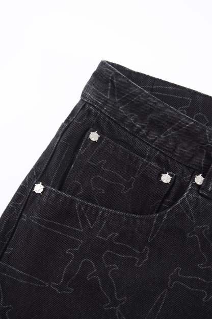 ALL OVER DAGGER LASER PRINT ON BLACK DENIM