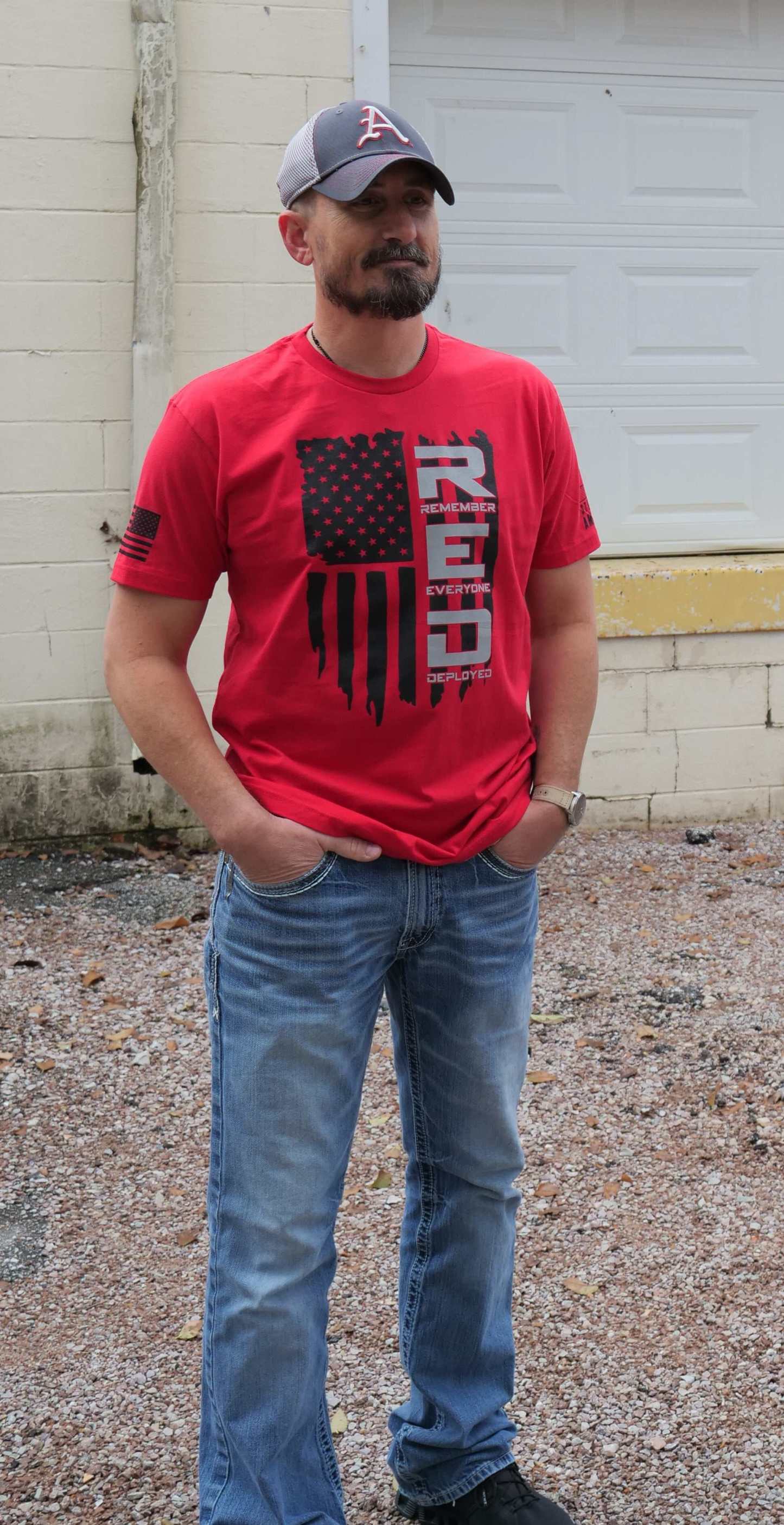 • Remember Everyone Deployed (R.E.D.) American Flag Design聽Screen Print on Front