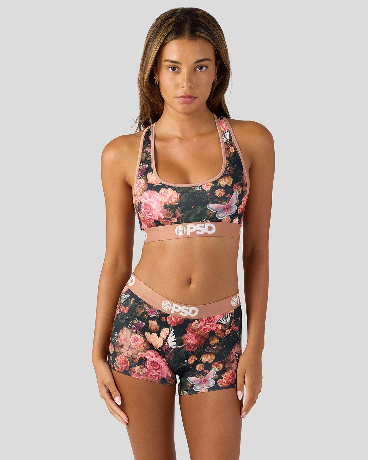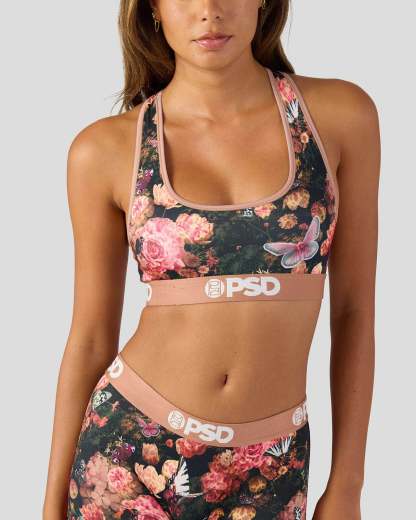 Featuring butterflies and animal-printed flowers, this new look is where edgy meets femme. The Moody Blooms Sports Bra is made from a silky poly blend that’s breathable yet slightly compressive, bringing you the comfort and support you need for everything you get into.